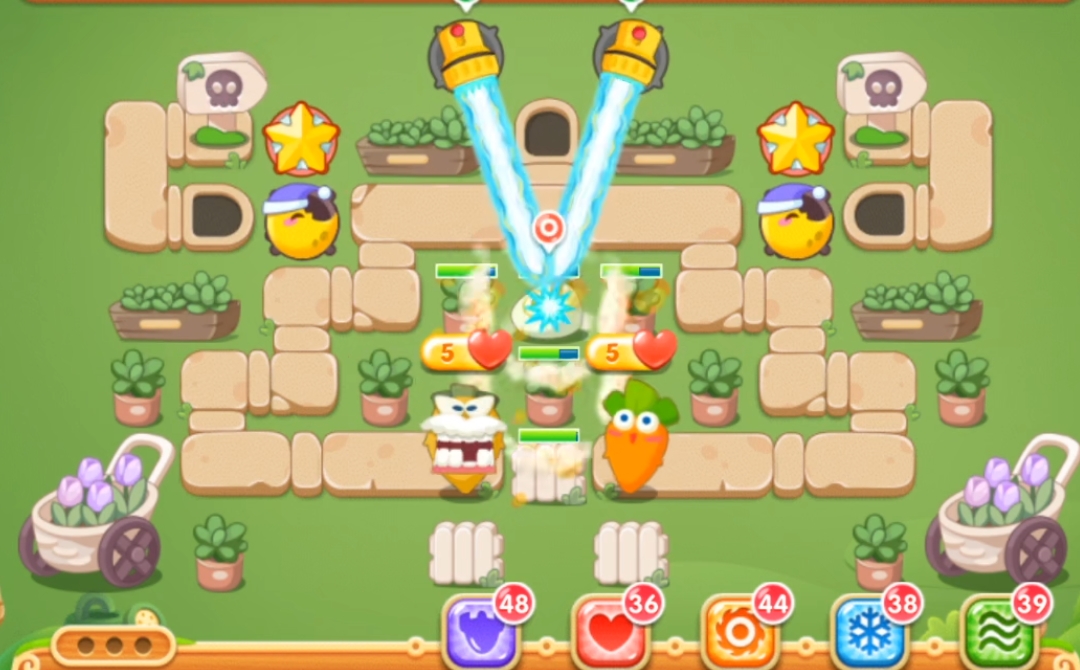 战术执行分为三阶段:初期集中魔法球清理右侧彩色蛋糕等障碍物,同步用瓶子炮防守首波怪物;中期在魔法球下方建造满级减速风扇,左侧部署单个月亮塔形成控制链;后期全图铺满满级魔法球并针对性在堡垒右侧放置2个瓶子炮加速摧毁堡垒。需注意白色分体怪和连续出现的高血量怪物是漏怪主因,需通过频繁切换炮塔攻击目标实现火力最大化。